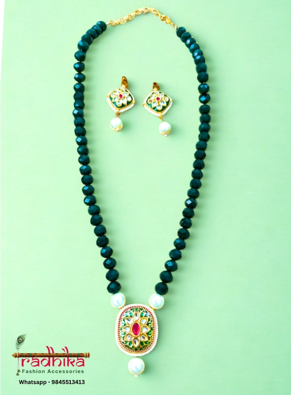 Crystal beaded necklace set with a beautiful pendant and perfectly matching earrings