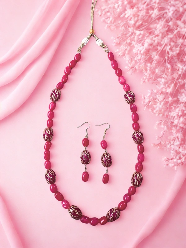 Duldul bead necklace with matching big beads placed at perfect intervals and earrings