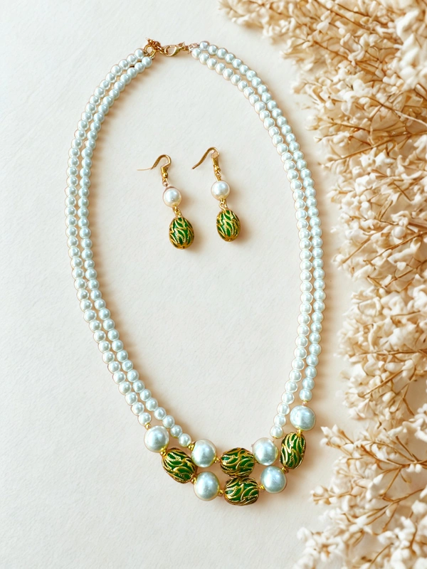 Why You’ll Love It:Elevate your style with this graceful 2-layer pearl necklace set, accented with bold contrast beads and paired with matching earrings. The soft glow of pearls is beautifully balanced by rich, standout bead accents creating a look that’s both classic and contemporary. Whether for festive occasions, special gatherings, or elegant daily wear, this set makes a confident, feminine statement.
