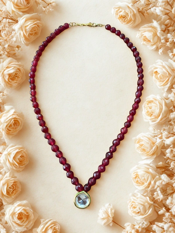 Beaded Necklace with Kundan Pendant