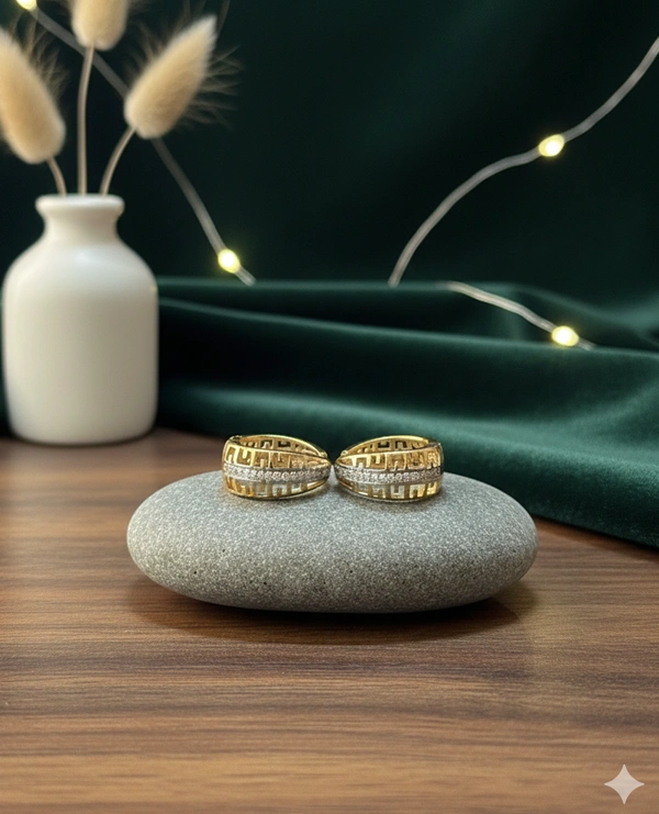 Why You’ll Love It:A luxurious rose gold finish accented by a sleek silver-toned center line, these earrings are studded with AD zircons for a subtle, refined sparkle.