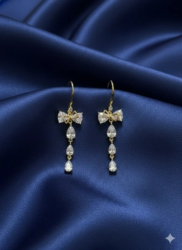 Why You’ll Love It:Delicate golden bow encrusted with sparkling crystals, finished with a graceful cascade of three shimmering teardrop stones.