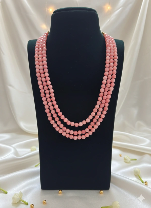 Why You’ll Love It:Make a regal statement with this stunning triple-strand beaded necklace. The clean lines and consistent bead size give it a sophisticated "Maharani" feel updated for the modern wardrobe. Whether paired with a traditional heavy saree or a deep-neck evening gown, this necklace acts as a powerful centerpiece that exudes grace and luxury.