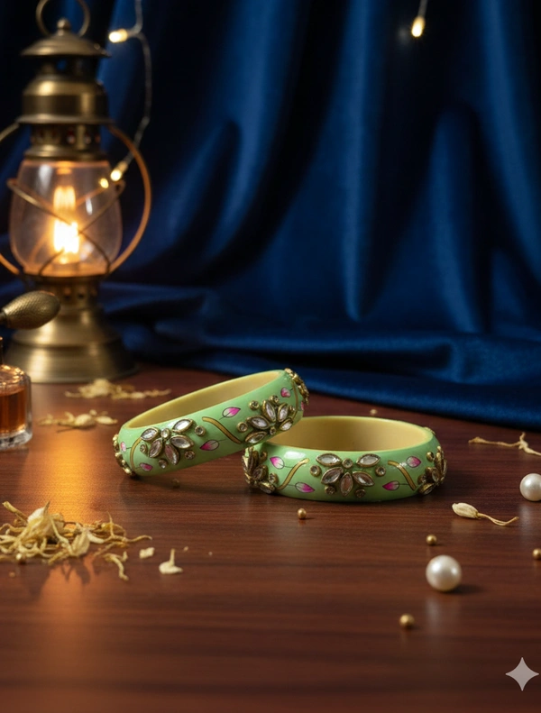 Why You’ll Love It:Each piece features meticulously hand-set, eye-shaped Kundan stones that create a stunning geometric pattern around the wrist. These bangles are designed for the modern woman who loves to celebrate traditional Indian craftsmanship with a touch of contemporary precision.