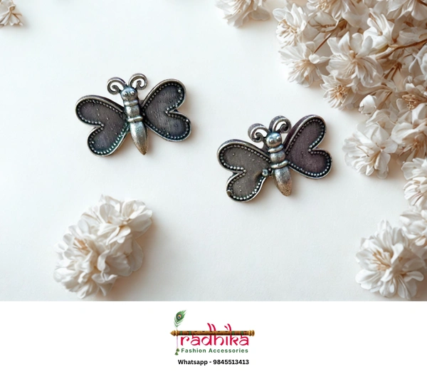 Oxidised butterfly stud earrings with rustic silver finish,