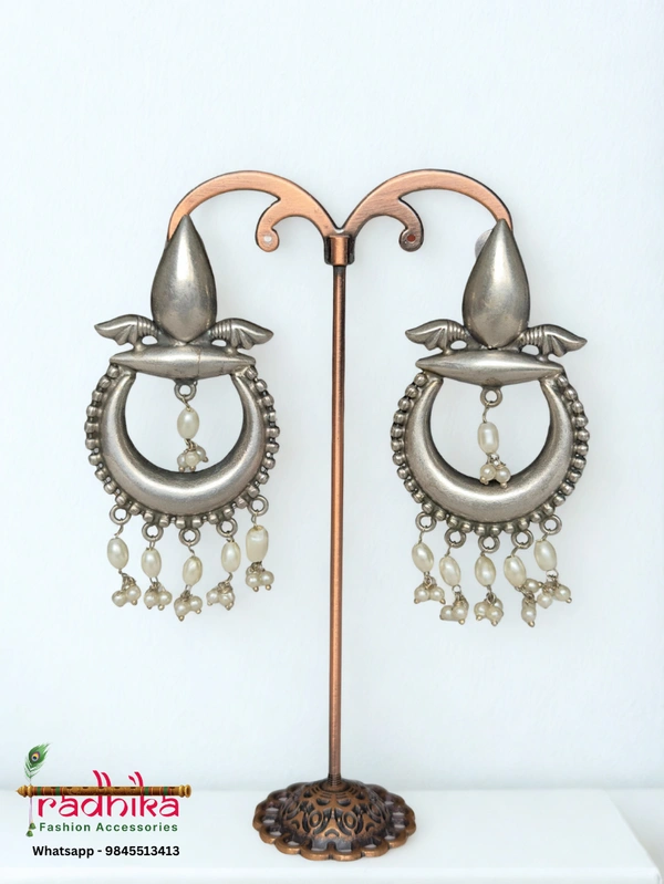 Oxidised Chandbali With Silver Finish