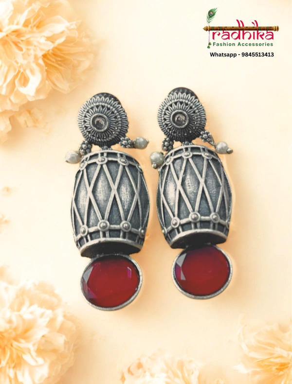 Oxidised Dhol-shaped Dangler With Bright Stone