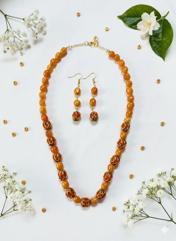 Why You’ll Love It:High-quality premium beads paired with matching, color-toned connectors that boast a rich, metallic gold look.It’s a sophisticated blend of organic beadwork and architectural metalwork, designed to add a polished finish to your professional or evening attire.