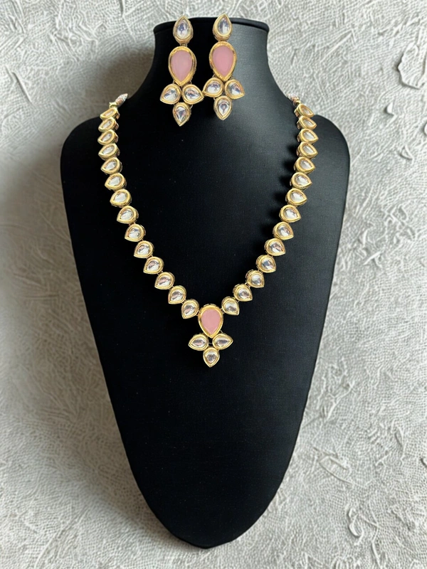 Teardrop Kundan Necklace with a Matching Pink Pendant and Earrings