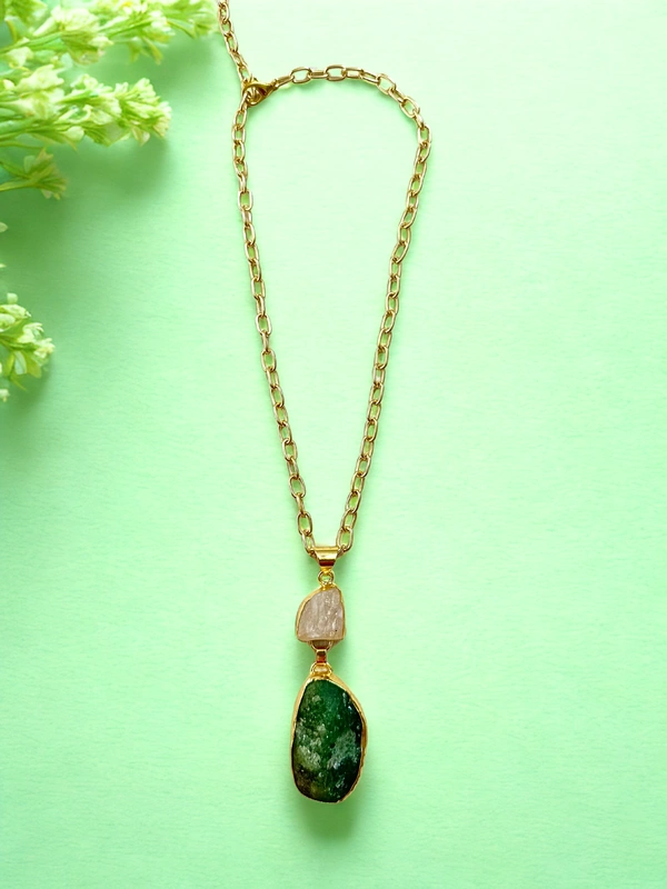 Why You’ll Love It:<p>A celebration of natural texture and timeless taste, this uncut natural 2 stone necklace brings raw elegance to your jewellery collection. Each piece features authentic, uncut stones that retain their organic charm, making every necklace beautifully unique. Lightweight and earthy, it pairs effortlessly with both ethnic and contemporary outfits perfect for the woman who values individuality over perfection.</p>