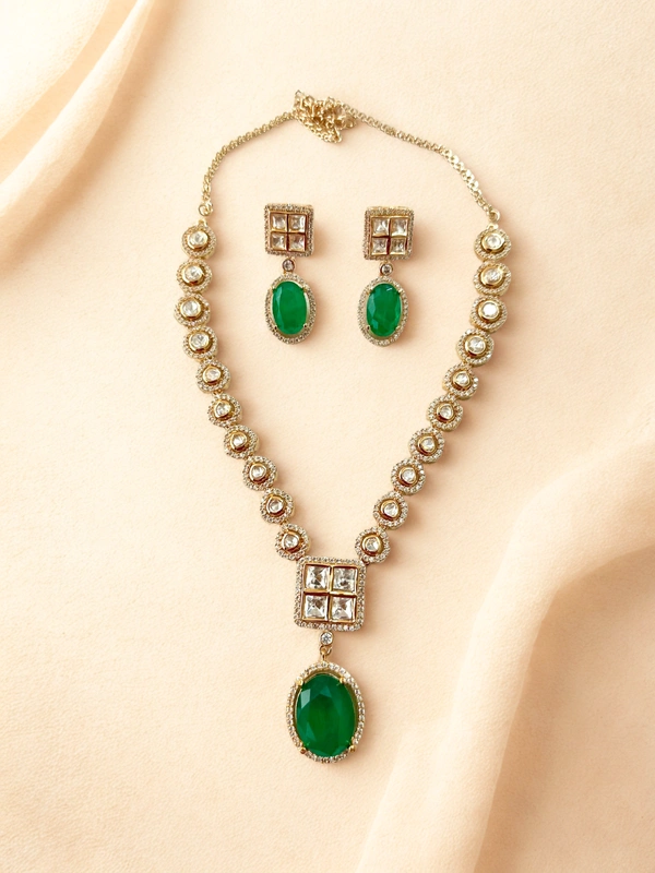 Zircon necklace set, featuring a beautifully crafted pendant and matching earrings